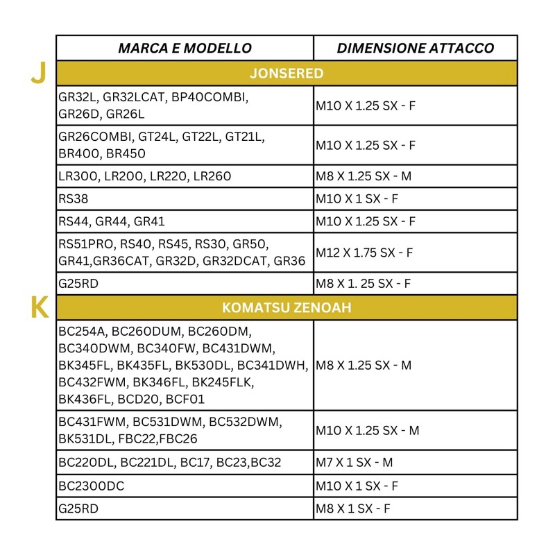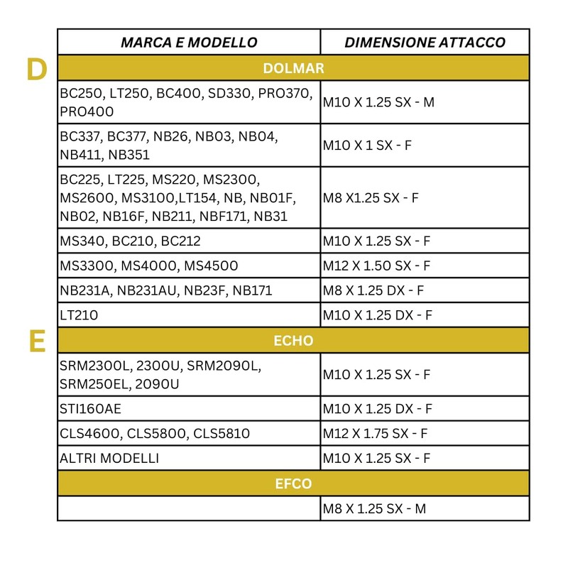 - Alkko | 106389,106144, 106436, 106145 - Alpina Casstor | 21-25-30-34D-34F-42-52-52D- 52F-42D-42 - Dolmar | BCC. 225, LT225, MS220, MS2300, MS2600, MS3100, LT154, NB, NB01F, NB02, NB16F, NB211, NBF171, NB31