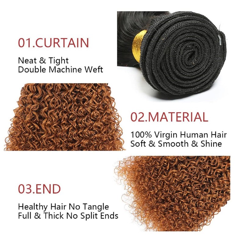 - 🌼Human Hair Material:Unprocessed Brazilian Virgin Omber 30 Brown Curly Human Hair Bundles,Soft and Healthy to Make Sew In or Wigs.