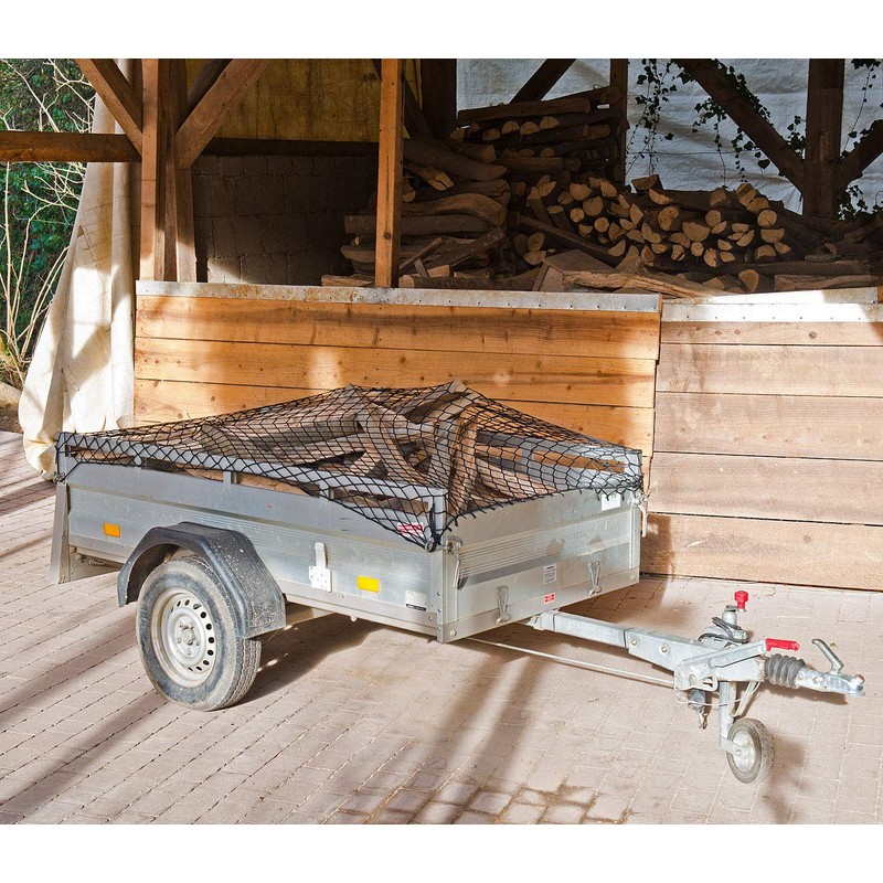 Lescars Rubber net: trailer luggage net with all-round rubber cord, 125 x 210 cm (luggage net load securing, car load securing, suitcase organiser)