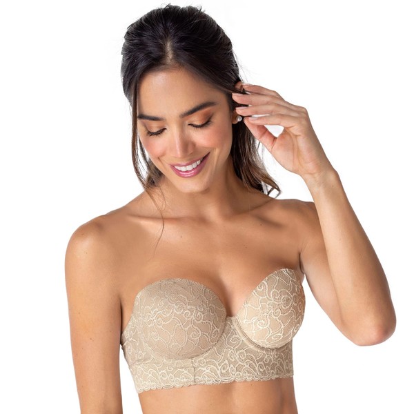 LeSensuel Strapless Lace Bra Light Push Up Bra - Wide Supportive Underbust Band Underwire Bras for Women Beige