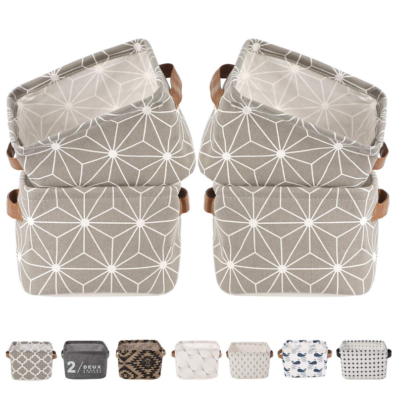LessMo 4 Pack Storage Baskets, Collapsible Mini Storage Boxes, Canvas Fabric Waterproof Storage Bins made from Cotton and Linen, for Toys, Bathroom, Closets, Playroom (GALAXY, Thin/waterproof)
