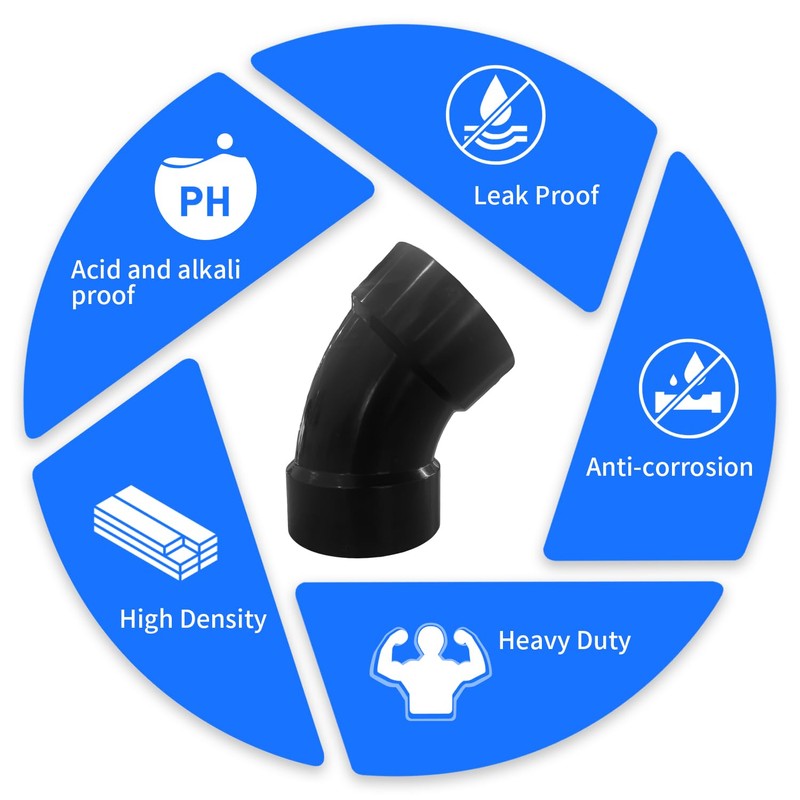 - 【EASY TO USE】 - 45 degree elbow 4" ABS pipe to your desired lengths and insert into the sockets to quickly build right-angle, 90 degree pipe connections. Connects two ABS segments on a single plane
