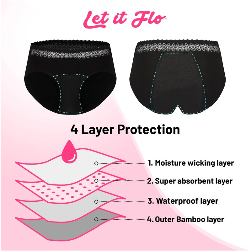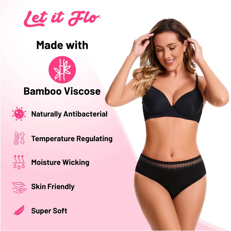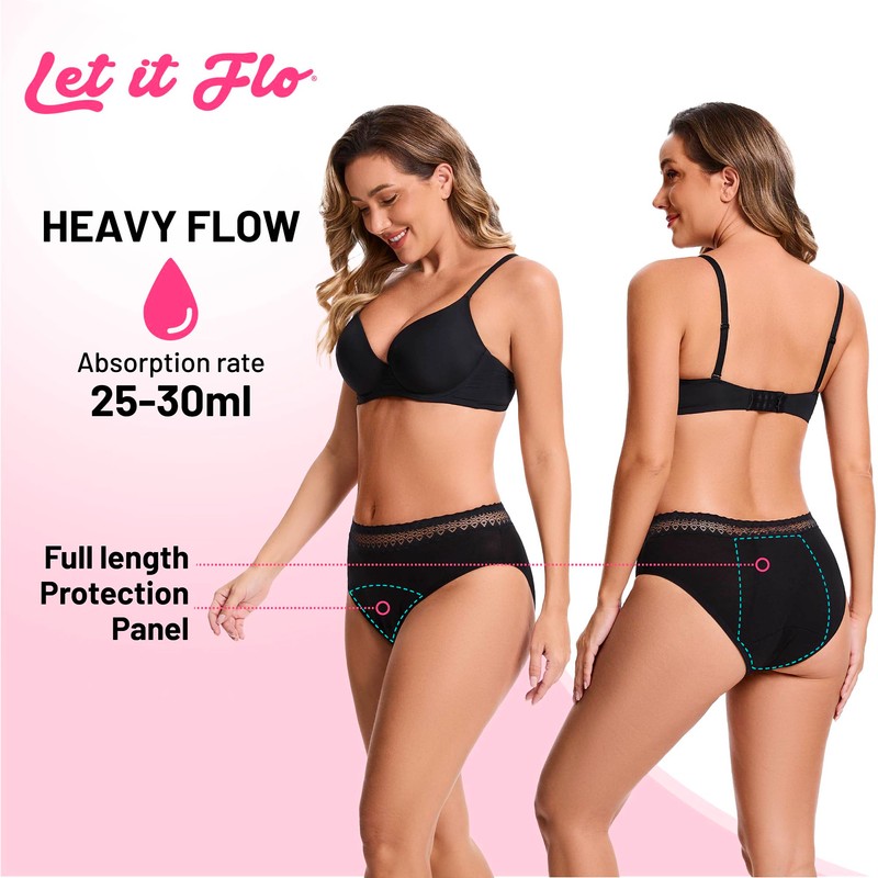 Let it flo Let it flo 1PK Ladies Period Briefs - Lace- 18 - Black