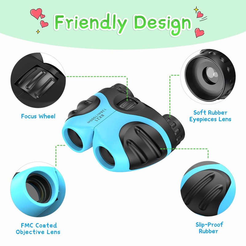 - ★ Real Binoculars for Kids: This product has a super magnification of 8X with an amazing view. The binoculars can be adjusted to easily match the eye distance gap for each child. Great for bird watching, learning, hunting, theaters, boat rides, hiking, traveling and enjoying the wilderness!