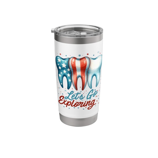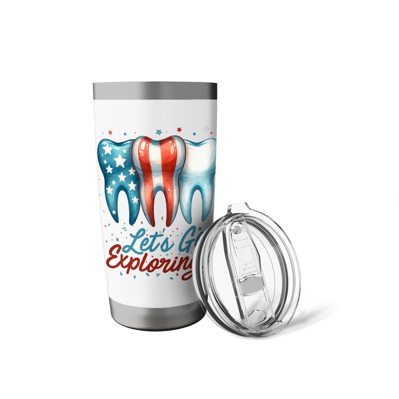 Let's Go Exploring! Dentist Adventure Fourth of July Teeth Stainless Steel Insulated Tumbler