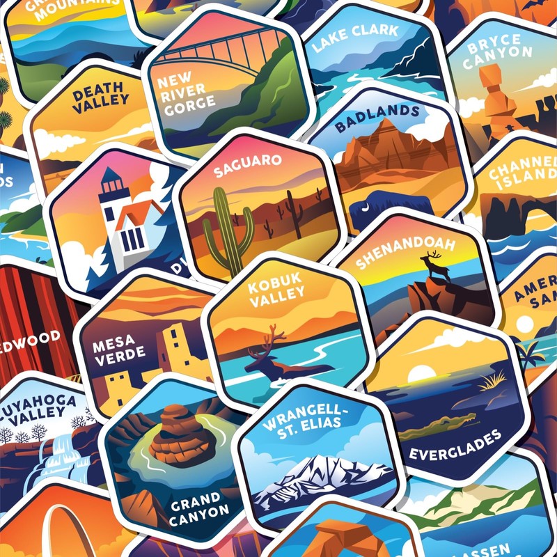 - ALL 63 USA NATIONAL PARKS: each national park has a custom design showcasing itskey features and landmarks from iconic mountains to the Grand Canyon.