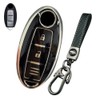 [LETINGFAR] キーケース 日産用 スマートキーケース キーカバー 柔らかい TPU素材 3ボタン 日産専用設計 キーホルダー セレナ/エクストレイル/エルグランド/スカイライン/ノート 等に適用キーケース (ブラック (キーホルダー付き))