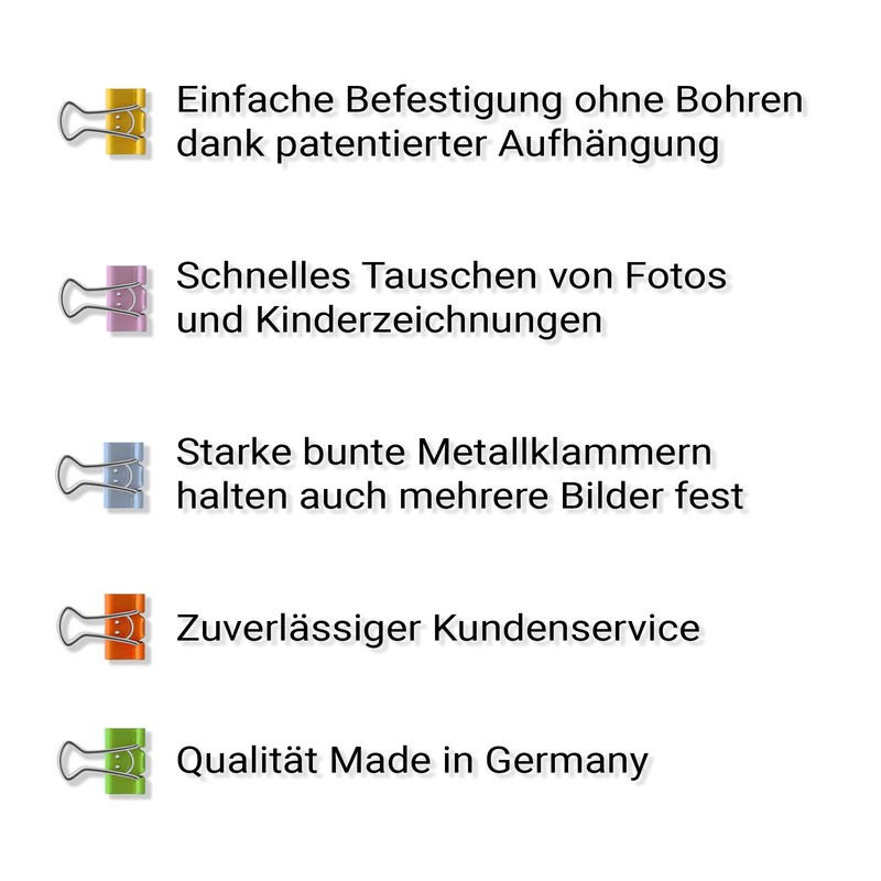 - Quickly swap photos – ideal for hanging photos, postcards and children's drawings even in large format damage-free