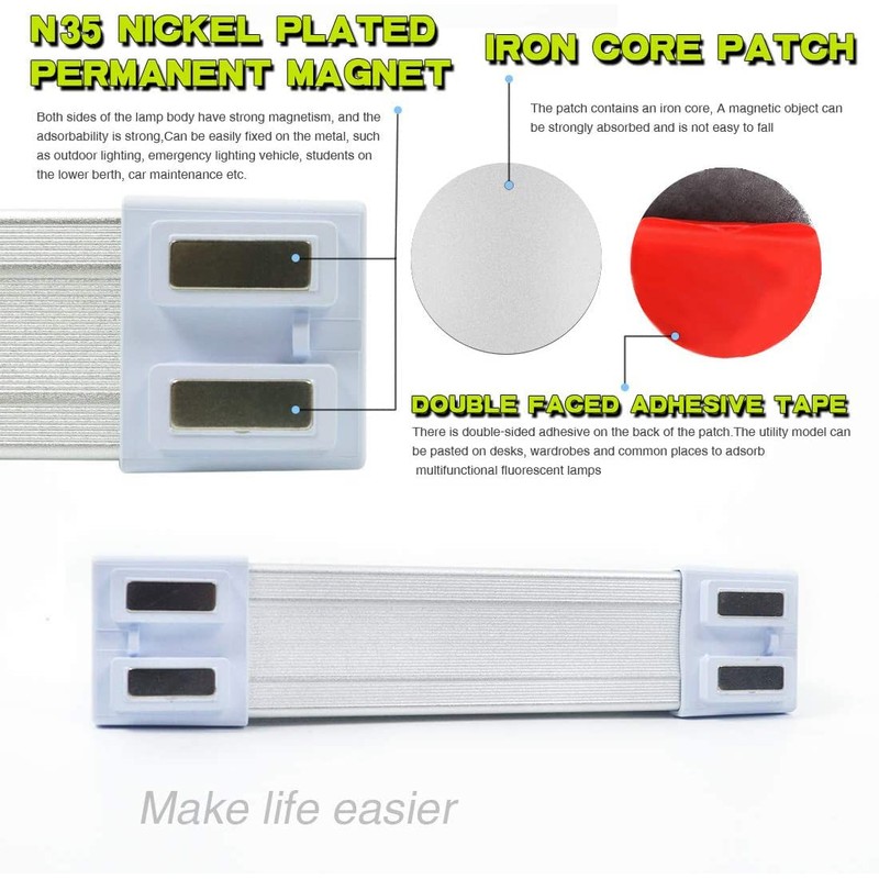 - 【WIRELESS & PORTABLE】: The LETOUR light bar comes with built-in magnet allows you to stick this cordless light to any metal surface, or use the included two metal circular discs with adhesive backing to stick to any cabinet, furniture, closet, kitchen, library, study, car, etc.
