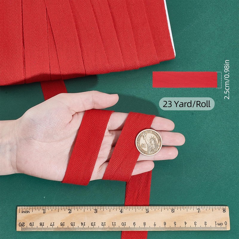 - TWILL TAPE RIBBON: This package includes 1 roll of cotton twill tape in a vibrant Bright Red color. The tape measures 23 yards in length and 25mm (1-inch) in width, providing ample length for a variety of projects