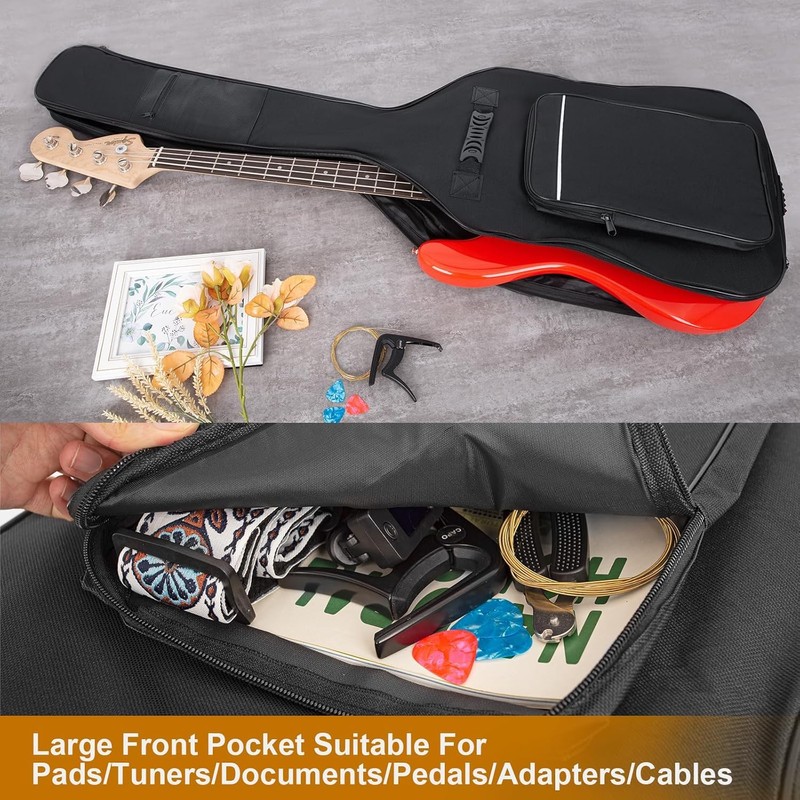 - ♪ [Black Bass Guitar Bag] Black 600D textured oxford look with waterproof and cratch-resistant smooth lining and 0.38 Inch padding, easy to carry and avoid damage caused by bumps during transport.