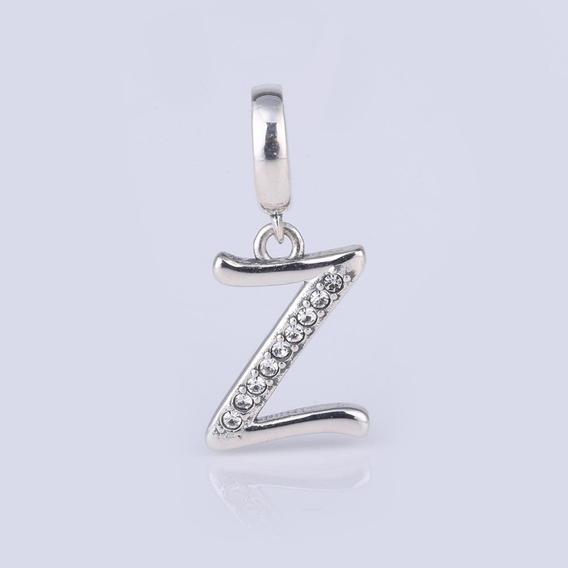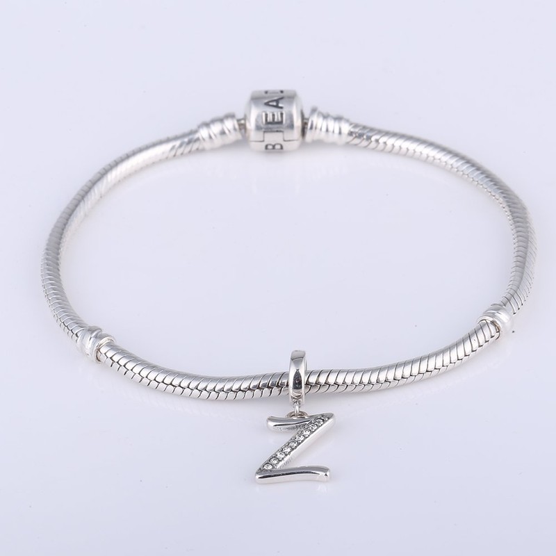 Letter Initial A-z Alphabet Beads Solid 925 Sterling Silver Dangle Crystal Charms European Bracelets (Z)