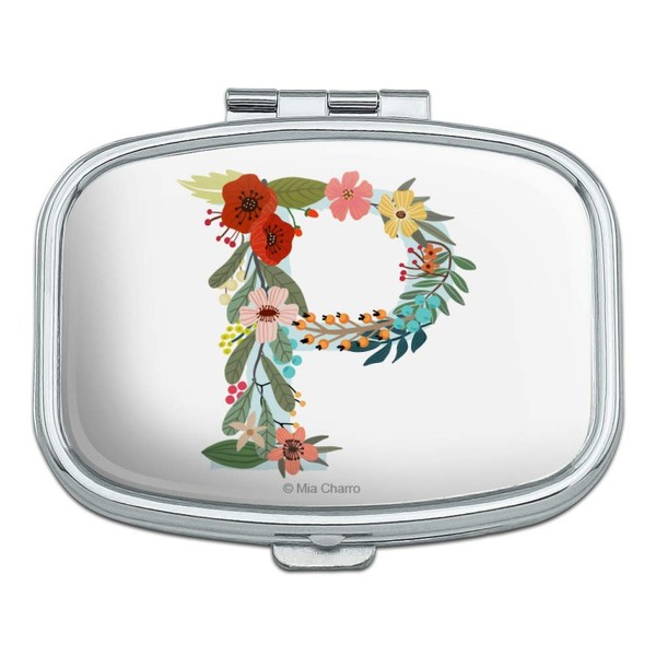 Letter P Floral Monogram Initial Rectangle Pill Case Trinket Gift Box