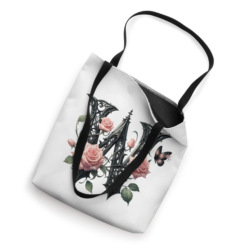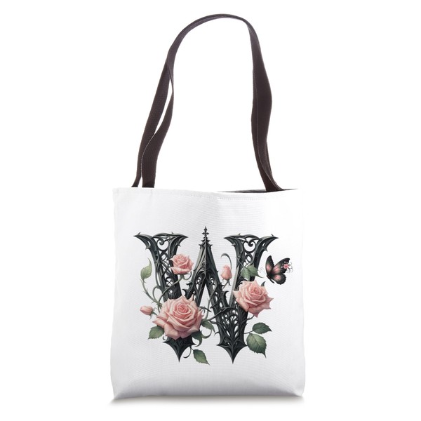 Letter W Initial Floral Monogram Rose Pink Flower Butterfly Tote Bag