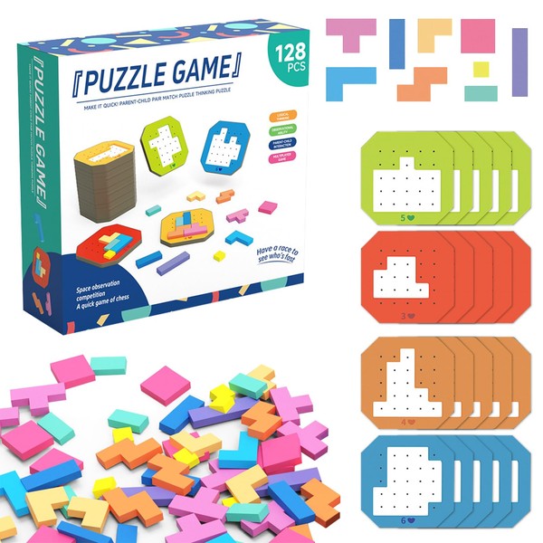 1 set x 128-piece colourful block puzzle game (108 puzzle pieces + 20 cards).