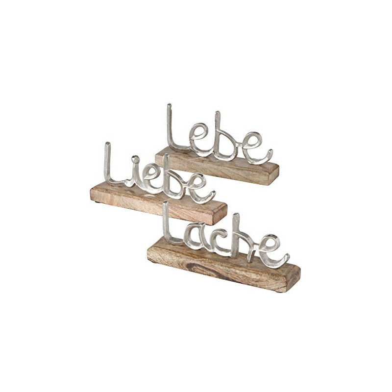 Lettering "Lebe Liebe Lach" Decorative Stand Table Decoration Aluminium Mango Wood Set of 3