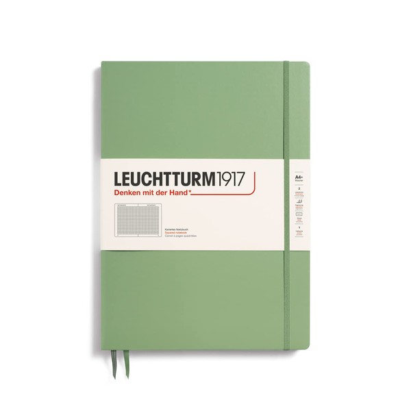 LEUCHTTURM1917 363919 Master Slim (A4+) Hardback Notebook 123 Numbered Pages Sage Squared