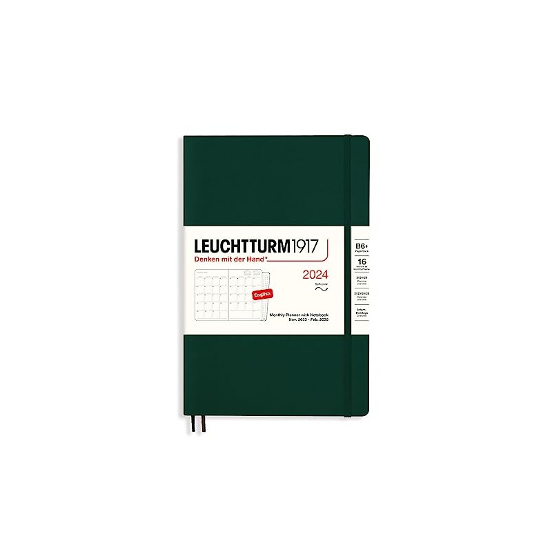 LEUCHTTURM1917 367573 Monthly Planner with Notebook, Softcover, Paperback (B6+) 2024, 16 Months, Forest Green, English