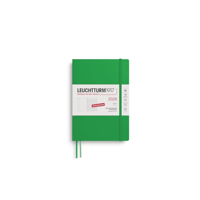 LEUCHTTURM1917 372497 Weekly Calendar & Notebook Medium (A5) 2026, 12 Months, Soft Cover, Spring Leaf, German
