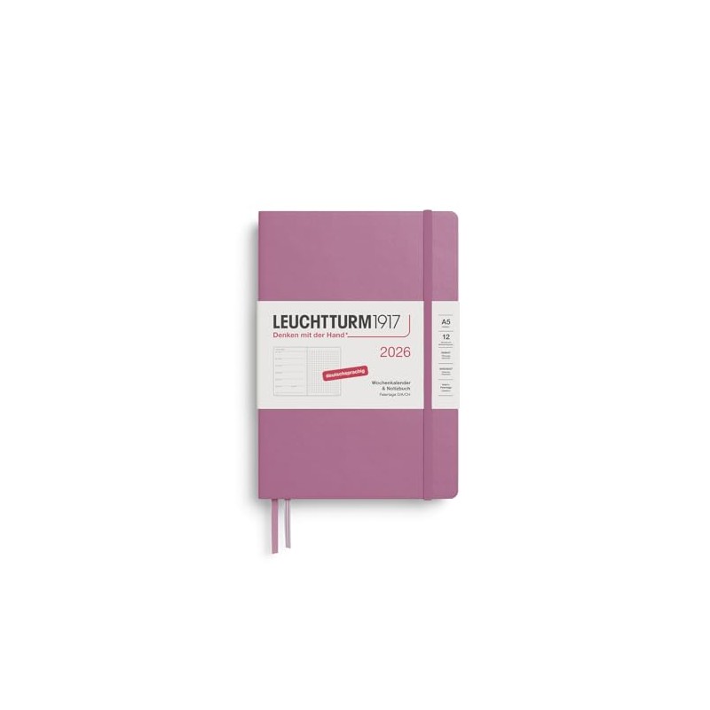 LEUCHTTURM1917 372520 Weekly Calendar & Notebook Dotted Medium (A5) 2026, 12 Months, Dusty Rose, German