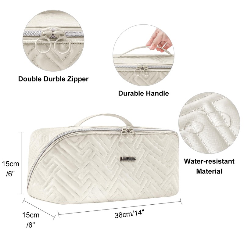 - Easier Access Design:The flat hair tools travel bag that keeps up with your pace! It opens flat, allowing you to view all your hair tools at once, and then easily scrunches closed when you're ready to go. The carrying case features a smooth metal zipper that opens and closes effortlessly, ensuring no snagging. Its firm lines are exquisitely proportioned, and every detail adds to the product's overall sense of refinement.