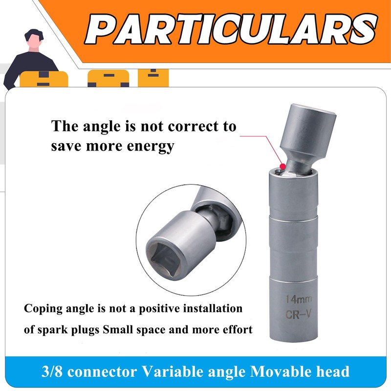 - Internal Magnet Feature: This innovative rotating spark plug socket incorporates a powerful magnetic ring positioned internally. This magnetic ring facilitates strong adsorption, enabling you to securely hold the spark plug in place during both installation and removal processes. By doing so, it effectively safeguards the spark plug from potential harm and significantly minimizes the risk of damage.
