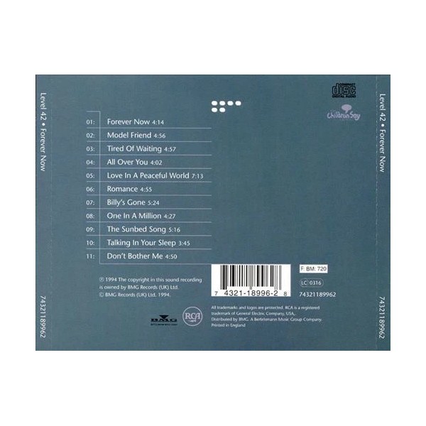 Forever Now is Level 42's best album since the mid-'80s heyday of World Machine and Running in the Family. After a two-album hiatus, drummer Phil Gould returned to the band on what would become its final studio release. The jazzy, horn-drenched title track is the highlight, but there are many solid cuts here, including "Learn to Say No" and the Hall & Oates sound-alike "Love in a Peaceful World." Incidentally, the track listing is considerably different from the European release (some tunes were remixed, while others were replaced altogether), but the quality is still intact. A worthy swan song. ~ William Cooper