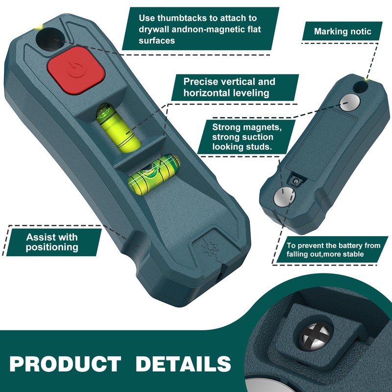 - [VERSATILE USE]: This laser level tool is great for hanging cabinets, shelves, mirrors, and more on drywall, wood walls, installing photo, door, window, or furniture carpentry, hanging wallpaper, etc.Whether you're working on a small household project or a grand-scale renovation, this tool is an essential addition to your workbench accessories collection.