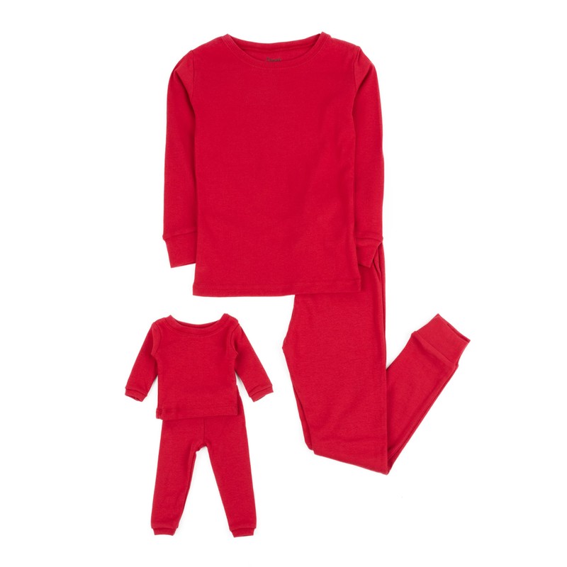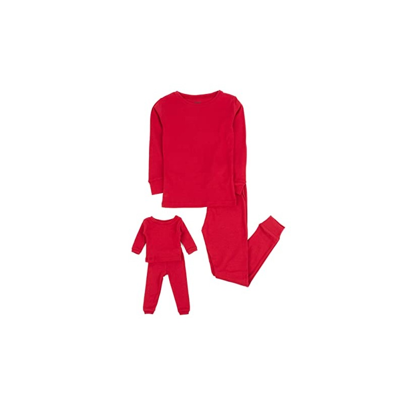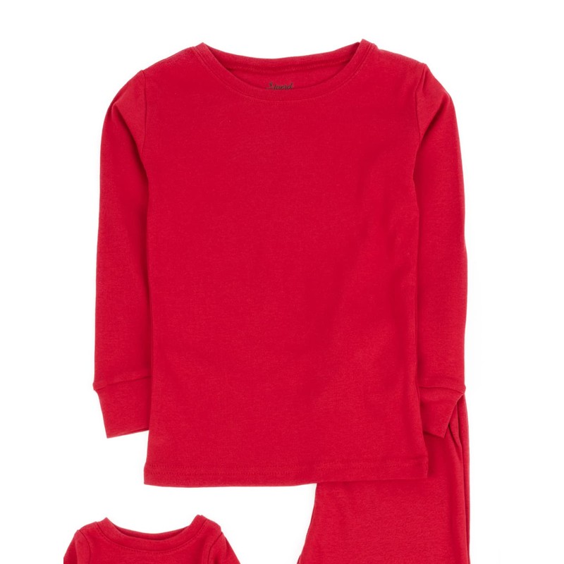 Leveret Girl and Doll Cotton Pajamas Solid Red 6 Year