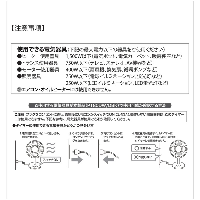 • Program minimum setting time: 1 minute, Program setting includes: Day/hour/minute, Maximum number of timers: 24, timer clock error: ±4 minutes or less (max) / month