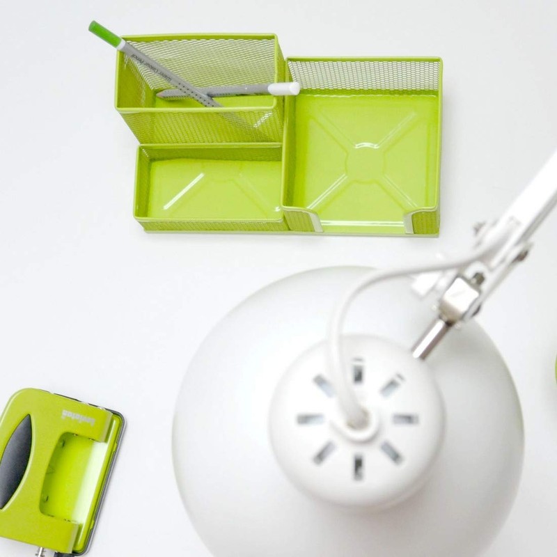 Leviatan Desk Organizer | Metal Desk Organizer | Office Pen Holder | Desk Organizer with Mesh Note Holder | 205 x 103 x 98 mm | Lime Green