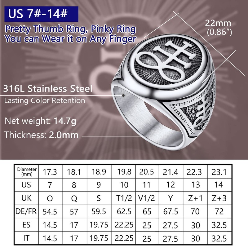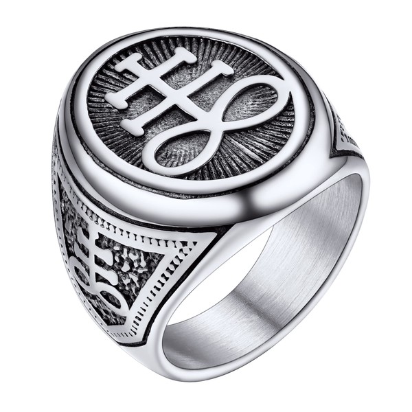 Leviathan Cross Stainless Big Ring For Men Size 14 Satanic Jewelry Goth Thumb Rings