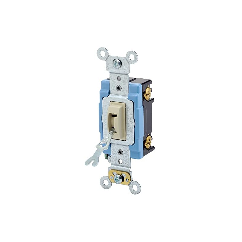 Leviton's Industrial Grade AC toggle switches for extra heavy-duty applications represent top-of-the-line quality and peak performance. Leviton uses the finest materials available and the highest production standards to produce industrial switches of unmatched versatility and reliability. 15 Amp, 120/277 Volt, Toggle Locking Single-Pole AC Quiet Switch, Extra Heavy Duty Grade, Self Grounding, Ivory.