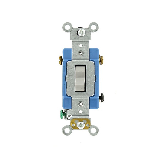 Leviton 1203-2GY 15 Amp, 120/277 Volt, Toggle 3-Way AC Quiet Switch, Extra Heavy Duty Grade, Self Grounding, Back and Side Wired, Gray