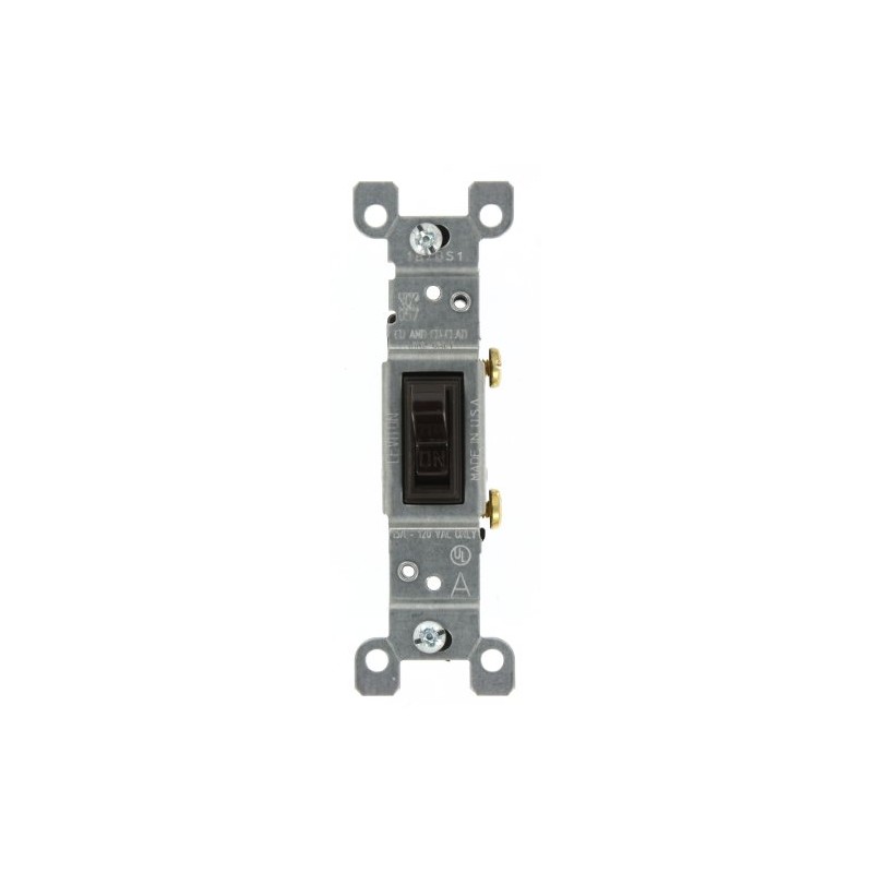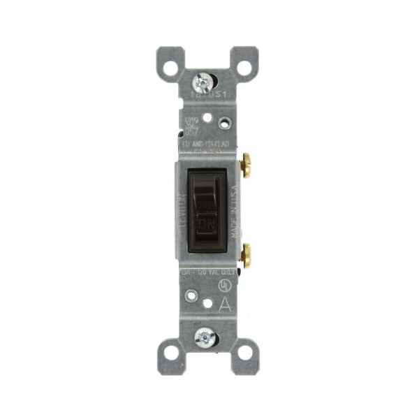Leviton 1451-CP 15-Amp, 120-Volt, Toggle Framed Single-Pole AC Quiet Switch, Residential Grade, Non-Grounding, Brown