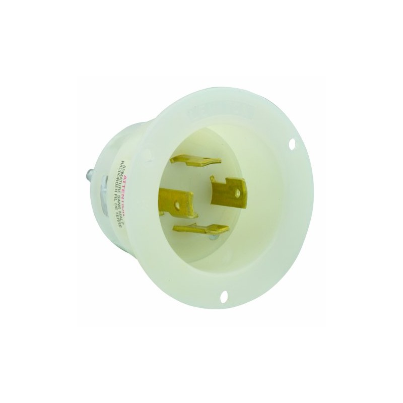Leviton 2735 30-Amp, 480 Volt- 3PY, Flanged Inlet Locking Receptacle, Industrial Grade, Grounding, White