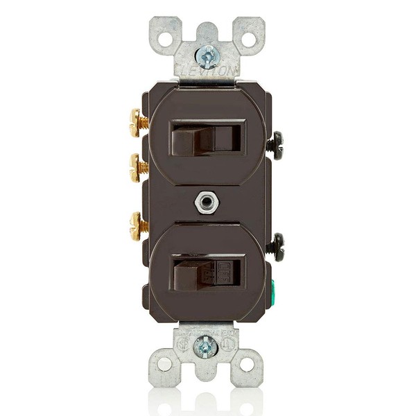 With Leviton's extensive assortment of combination devices, you can fill a one-gang space with two switches, a switch and receptacle, even a switch and GFCI. From sensor guide lights to multi-purpose styles and Tamper-Resistant receptacles, we accommodate your every need. These devices come in a range of colors and are backed by a limited two-year warranty. Built to last and designed to save space, these attractively styled devices are at home in any setting. 15 Amp, 120/277 Volt, Duplex Style Single-Pole 3-Way Ac Combination Switch, Commercial Grade, Brown.