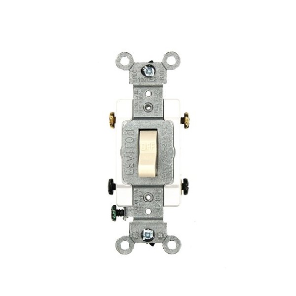 Leviton CSB2-20T 20 Amp, 120/277 Volt, Toggle Double-Pole AC Quiet Switch, Commercial Grade, Grounding, Light Almond