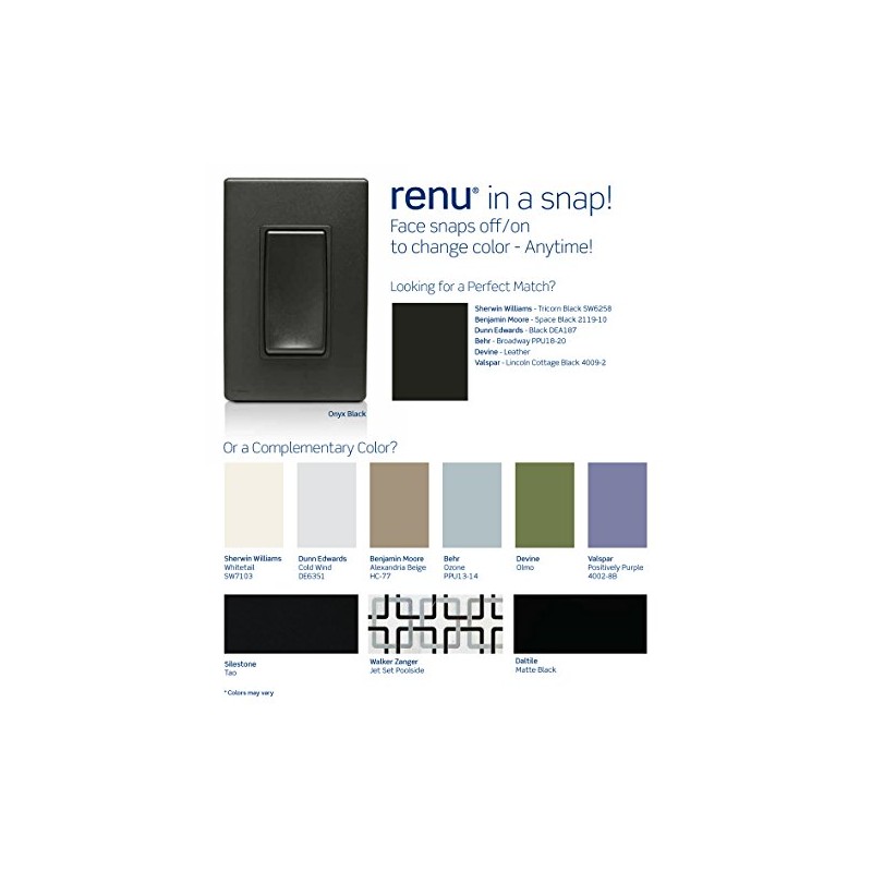 - Once installed, Renu coordinating dimmer remotes can be updated to a new color by ordering an RKDCD color change kit, available in 20 designer colors