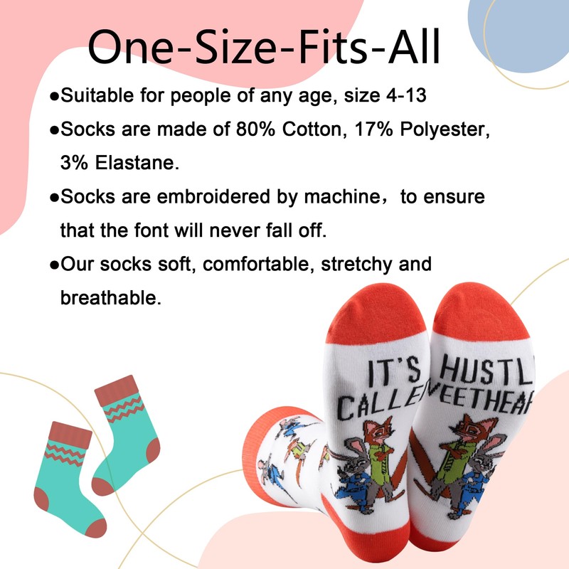 LEVLO Judy & Nick Socks Judy & Nick Fans Gift It's Called a Hustle Sweetheart Rabbit Fox Socks Judy & Nick Merchandise (US, Alpha, One Size, Regular, Regular, Judy Nick Sock)