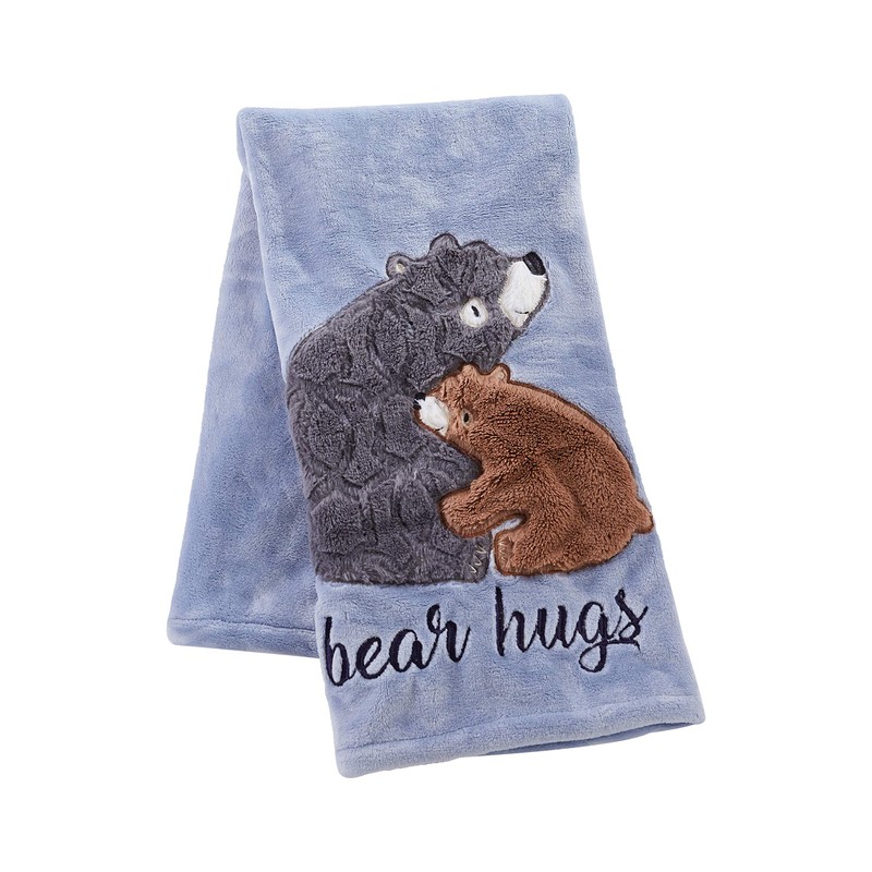 Levtex Baby - Rowan Plush Blanket - Appliqued and Embroidered Bears on Blue Plush - Blue, Brown, Black - Nursery Accessories - Blanket Size: 30 x 40 in.