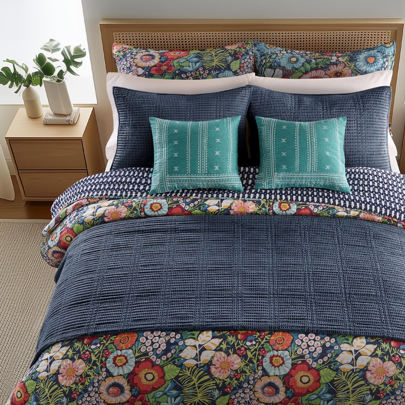 - COORDINATE DECOR: Create a wonderful bedroom space. The navy, red, pink, green, ochre and white design brings bohemian charm accents into your home, matching many different looks. Freshen your room with other items from the Night Garden collection.