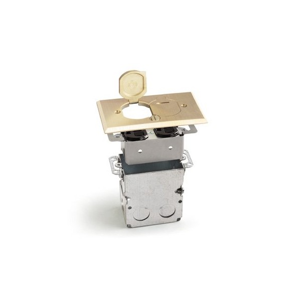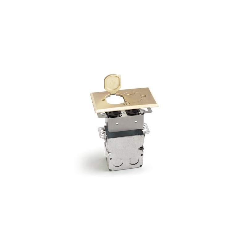 Lew Electric SWB-2-LR Floor Box, Recessed Flip Lid 15A TR Duplex Receptacle - Brass