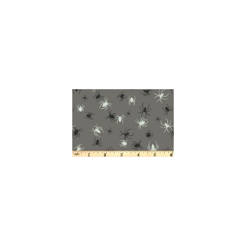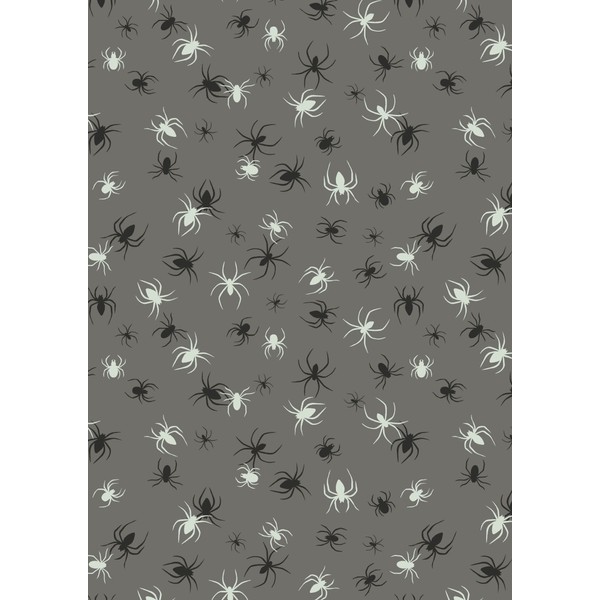 Lewis & Irene Haunted House Glow in The Dark Spiders Fabric, Grey