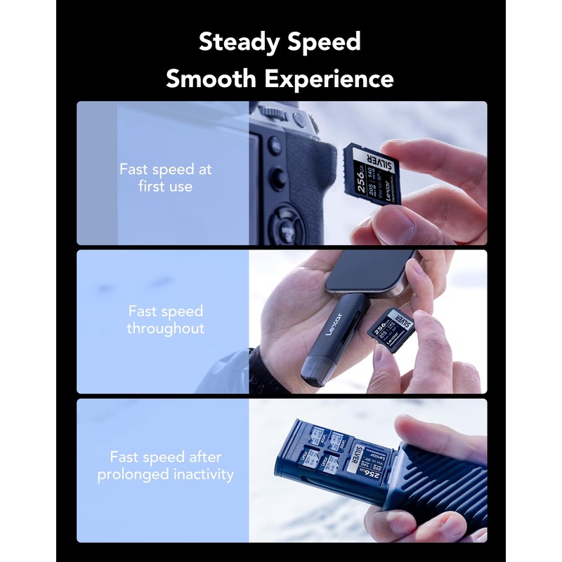 - 205MB/s max read speed expedites, transfers, and reduces wait times with Lexar RW310X card reader. Must Use Lexar RW310X card reader to achieve maximum transfer speed. (Sold separately). 140MB/s max write speed ensures you to capture burst photos without missing a shot.