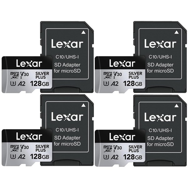 - 4x Lexar 128GB Professional Silver Plus microSDXC Card, 205MB/s Read, 150MB/s Write