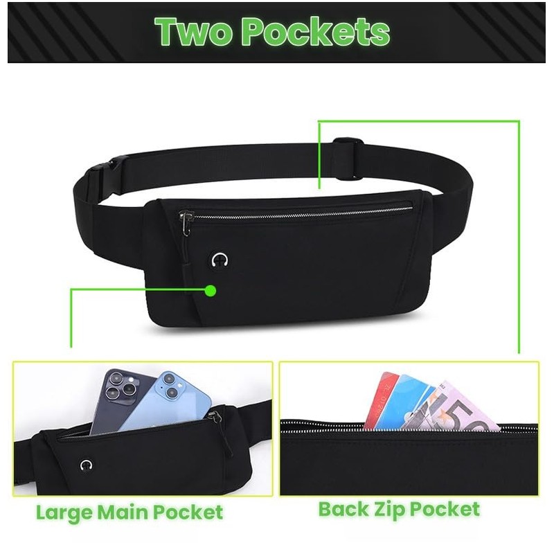 - Multifunktionale Taschen: Unsere Hüfttaschen für Damen und Herren haben 2 separate große Taschen. In die Hüfttasche passen alle Handys, Schlüssel, Bargeld, Kreditkarten und Reisepässe. Praktisches Kopfhörerloch, damit Sie Ihre Musik hören können.