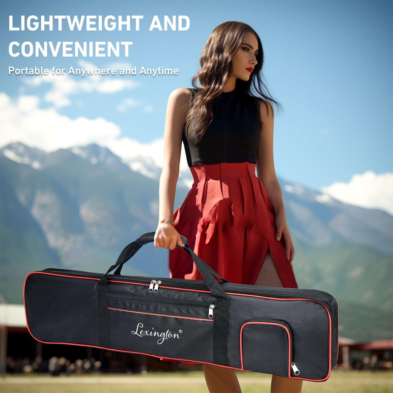 • It is only 33.8 inches long and 7.4 inches wide, compact and lightweight. Added with an extra bag and two power supply options - battery (no battery included) or power cord, you can play anywhere, anytime, without limitations