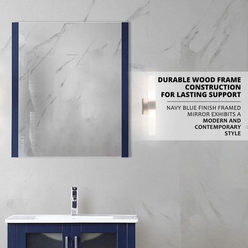 - Navy Blue finish framed mirror exhibits a modern and contemporary style