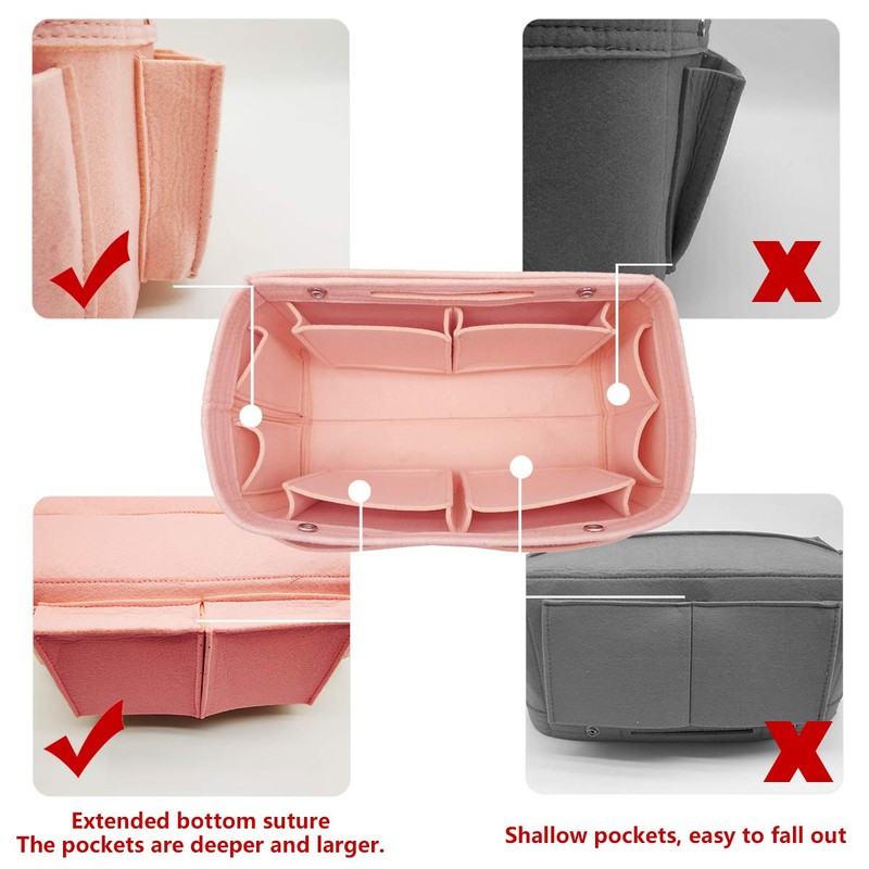 - Felt Purse Handbag Organizer Made of Sturdy Felt Cloth with High Quality and New , Soft and Pliable ,Lightweight and Well Constructed. The Organizer Bag with Many Pockets to Hold and Protect Your Phone Glasses, Tablet and Camera or Ipad etc. Keep Your Items Easy Find and Well Organized